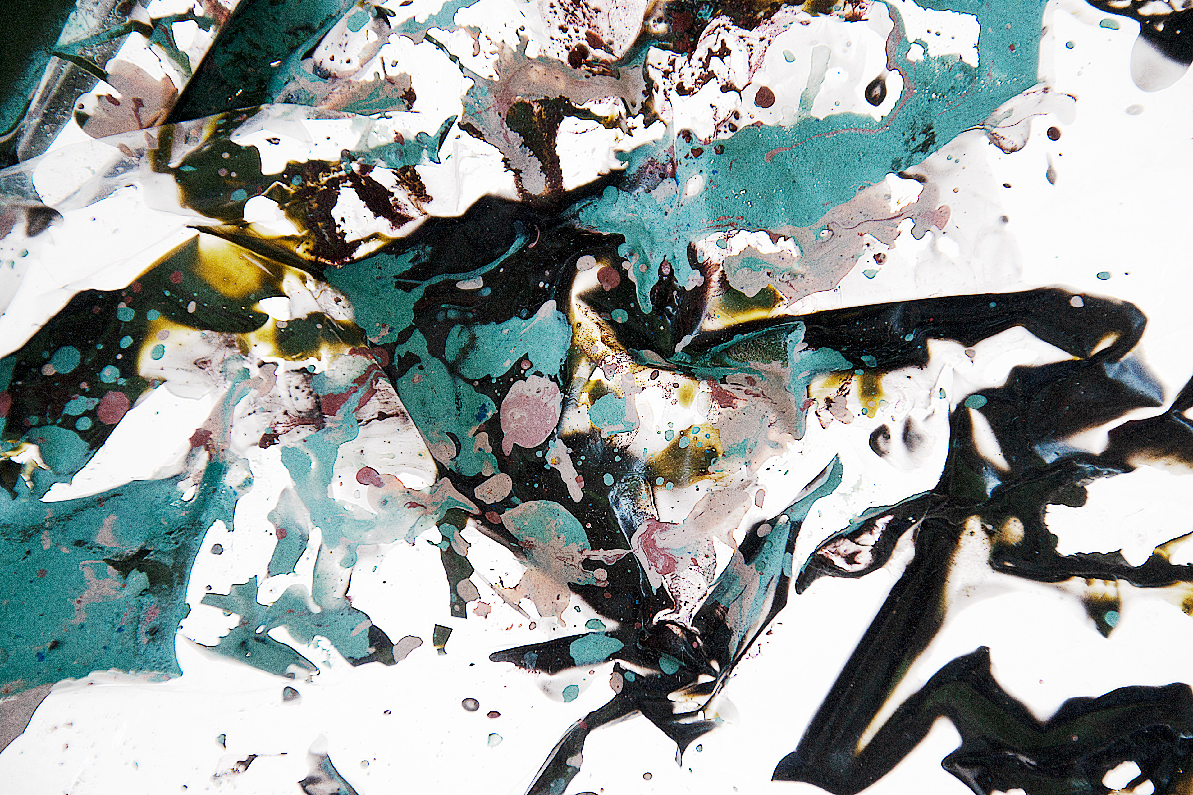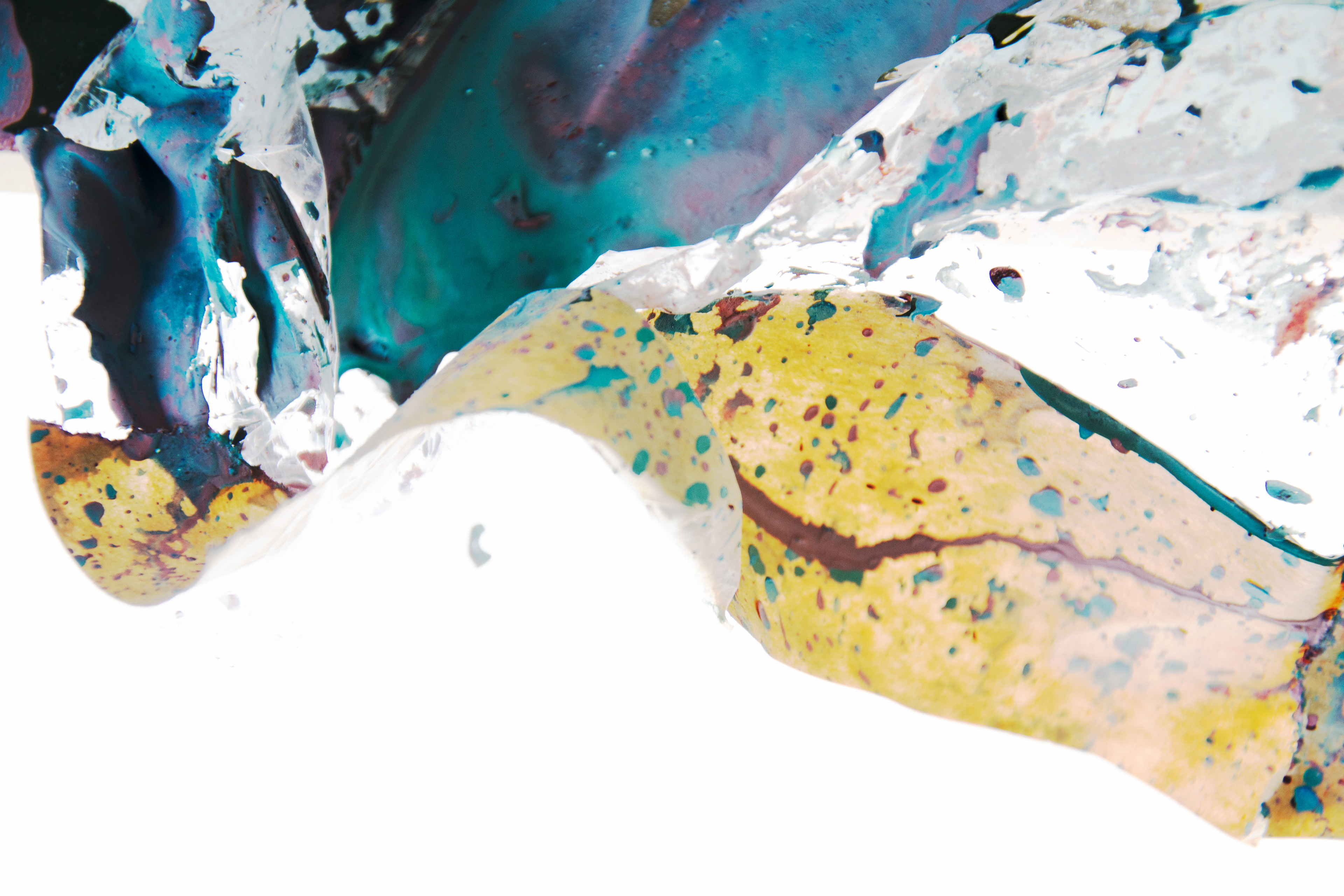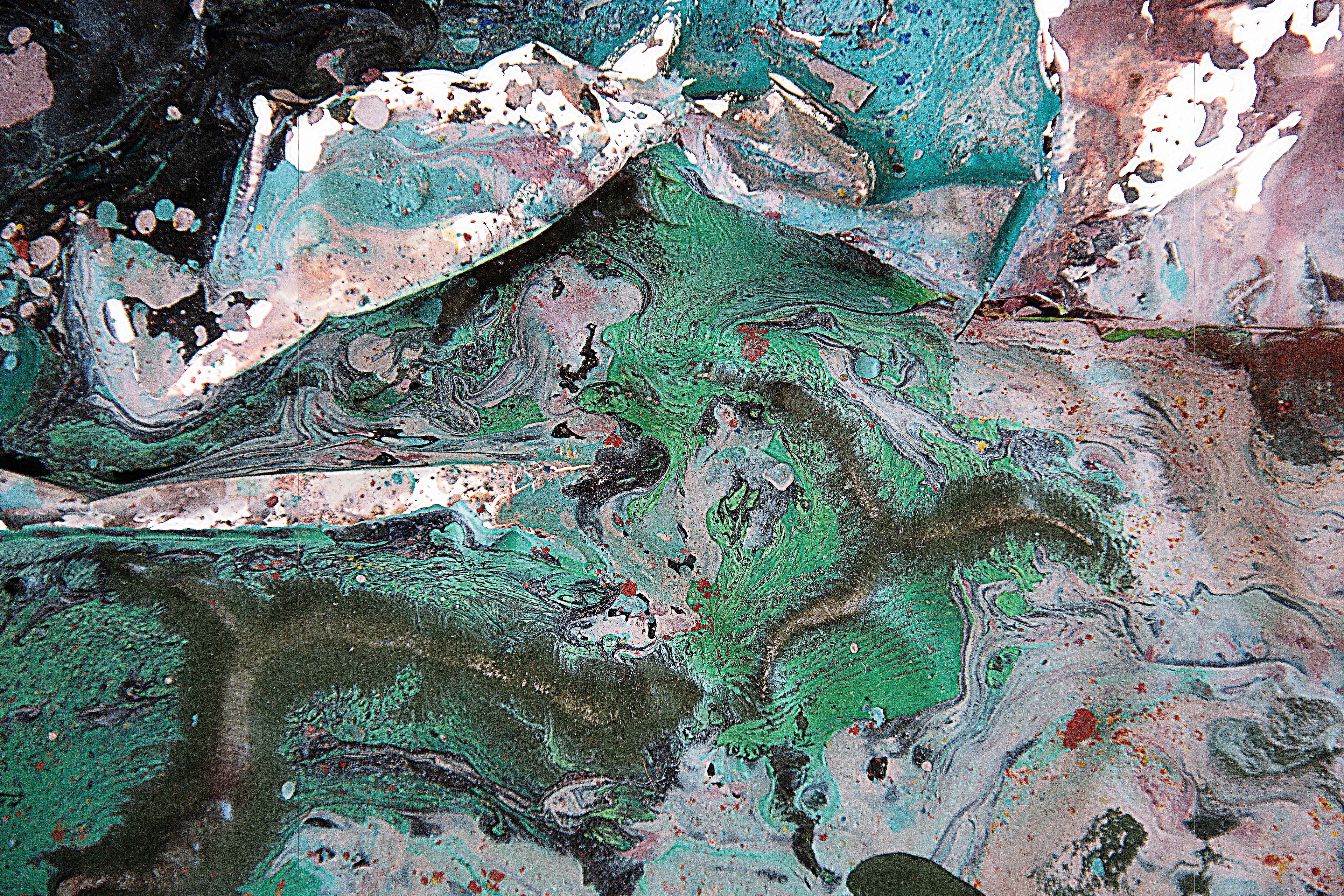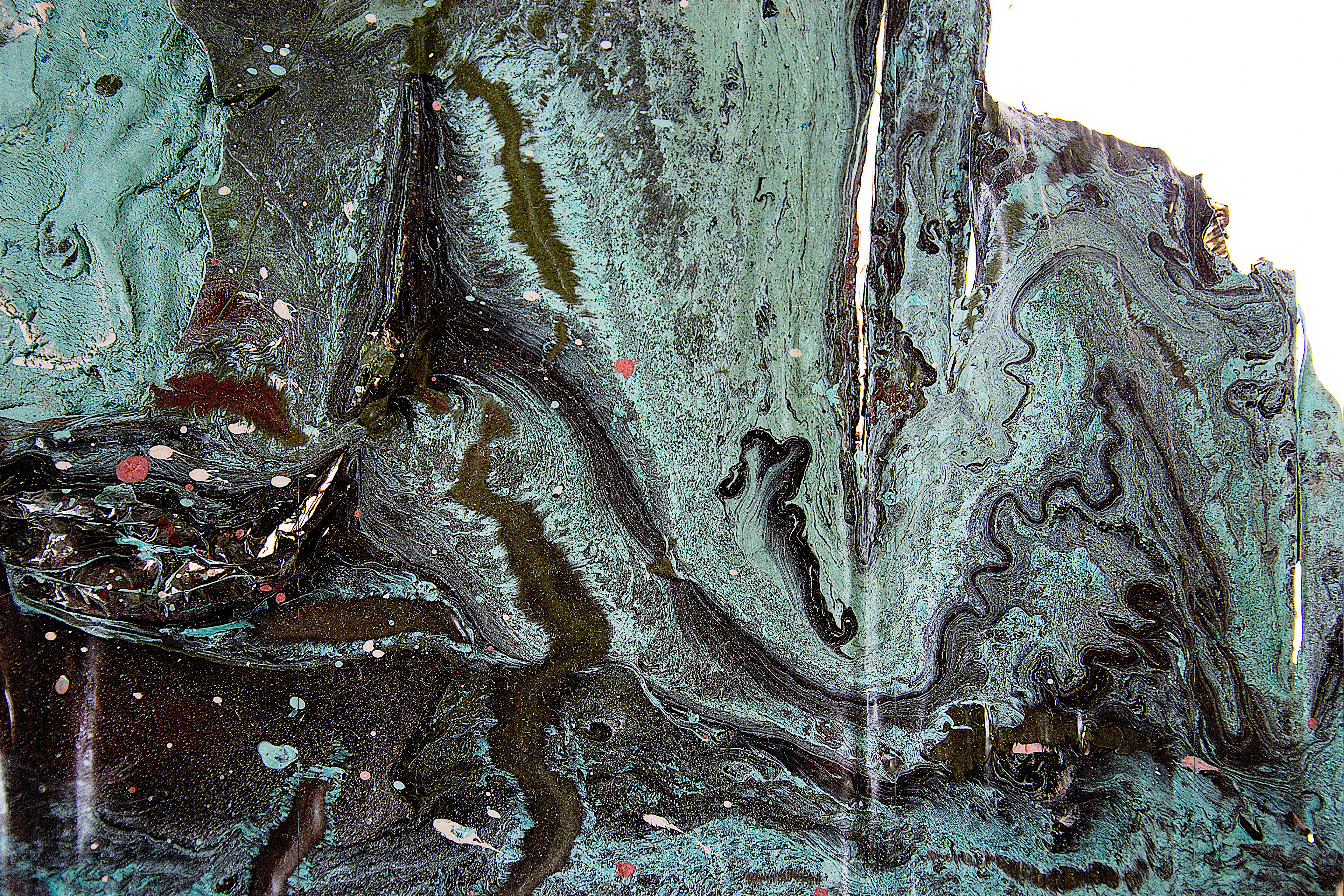Stillhet som efterblivet stormar, regn och allt de som format detta färglandskap. När de droppat och runnit likt väderleken bildar de mönster som vi känner igen från naturen. Att något gjort av plast och färg kan likna något så organisk är förunderligt.